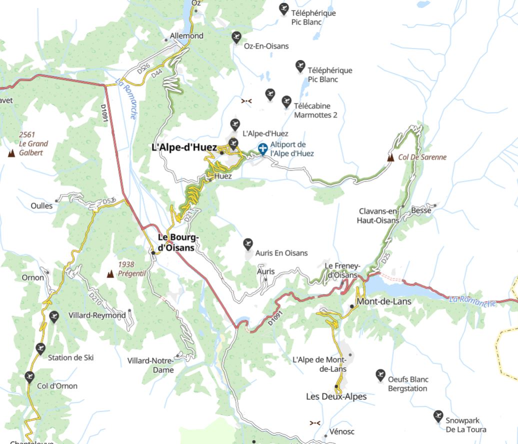 accès aux remontés depuis OZ pour l'Alpes-d'Huez ou de Venosc pour Les Deux-Alpes